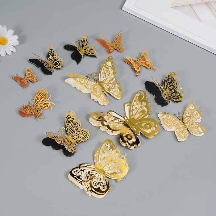 Набор магнитов на холодильник «Бабочки ажурные с золотом», 12 шт., картон, двойные крылья, h=4-10 см