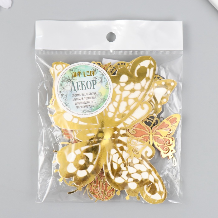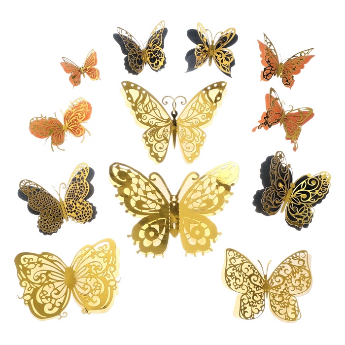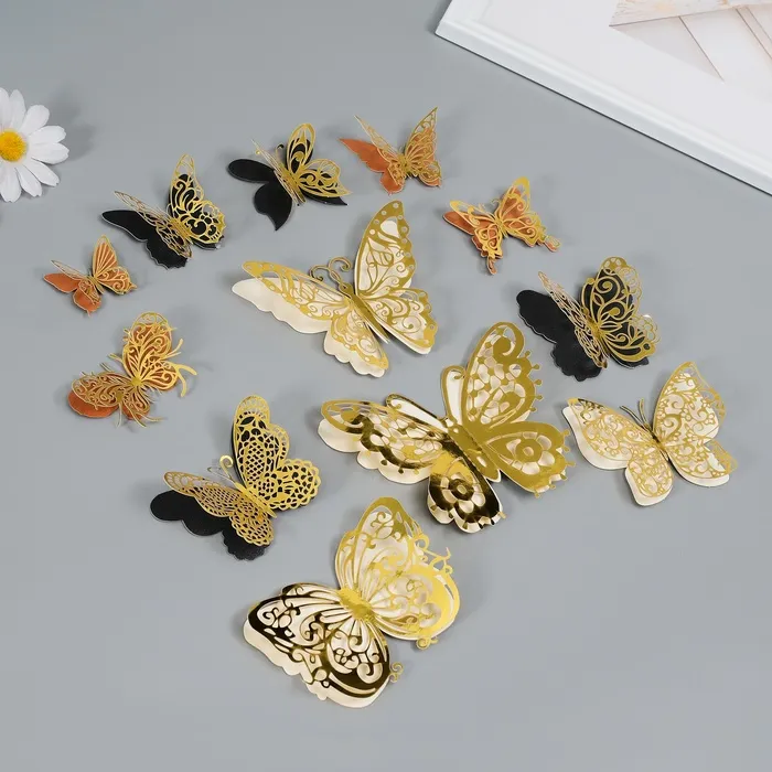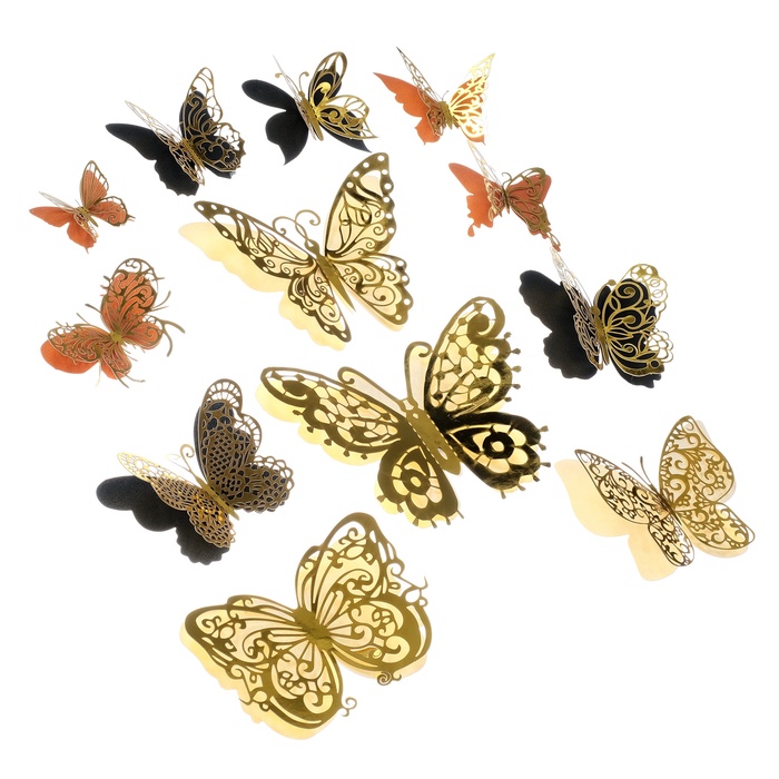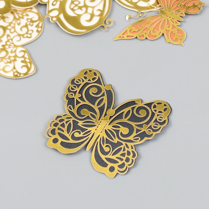 Набор магнитов на холодильник «Бабочки ажурные с золотом», 12 шт., картон, двойные крылья, h=4-10 см — Характеристики