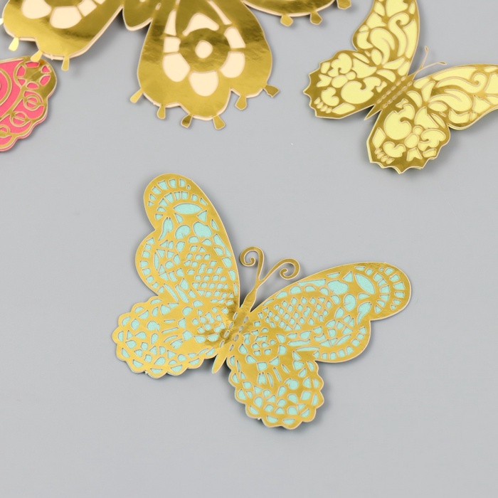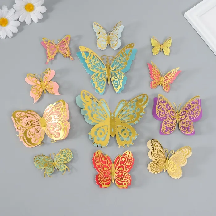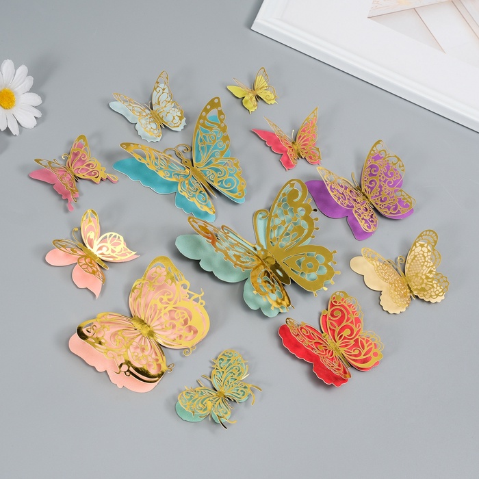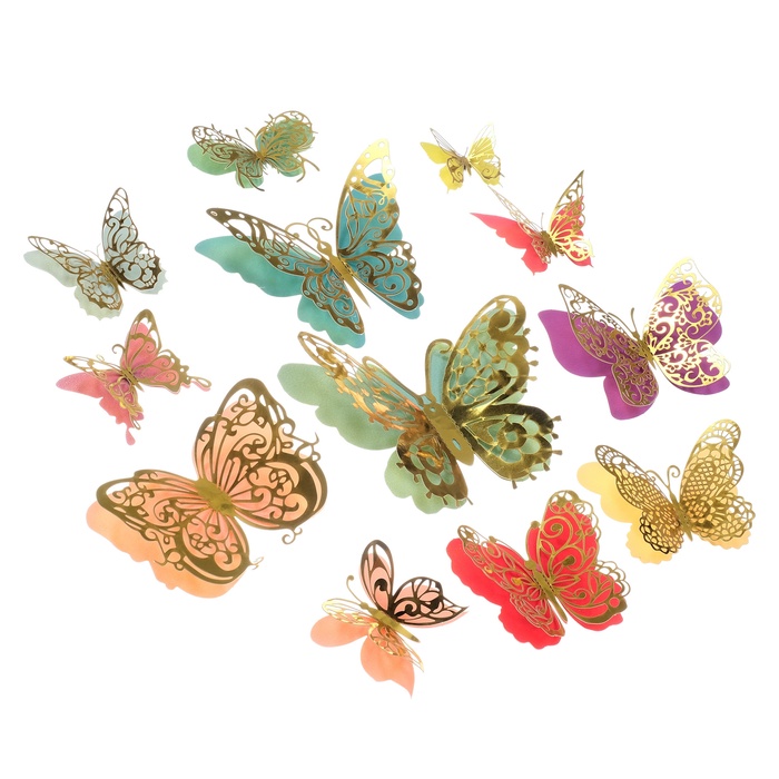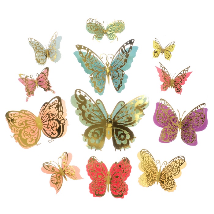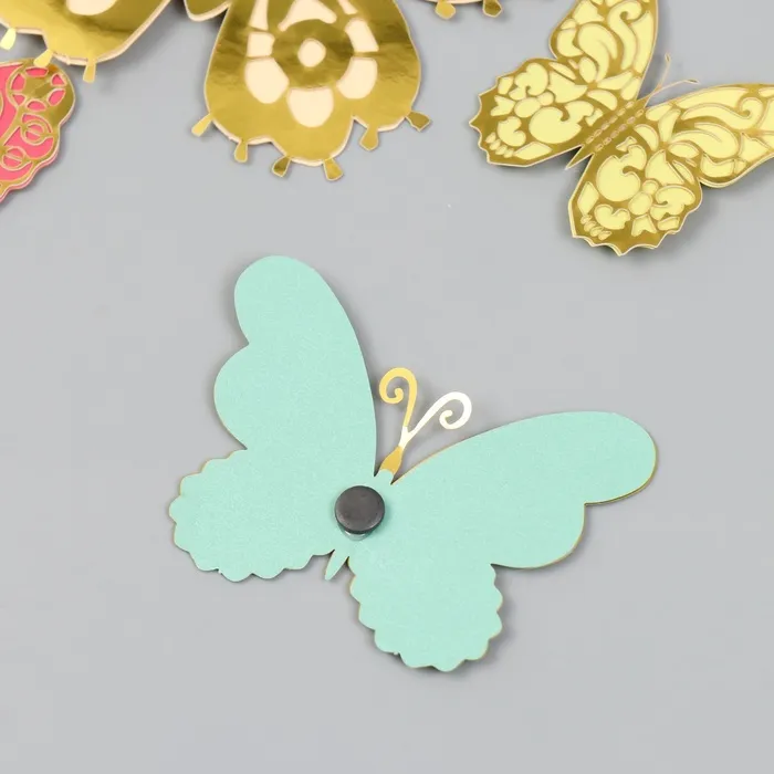 Набор магнитов на холодильник «Бабочки нежные расцветки», 12 шт., картон, двойные крылья, h=4-10 см — Характеристики