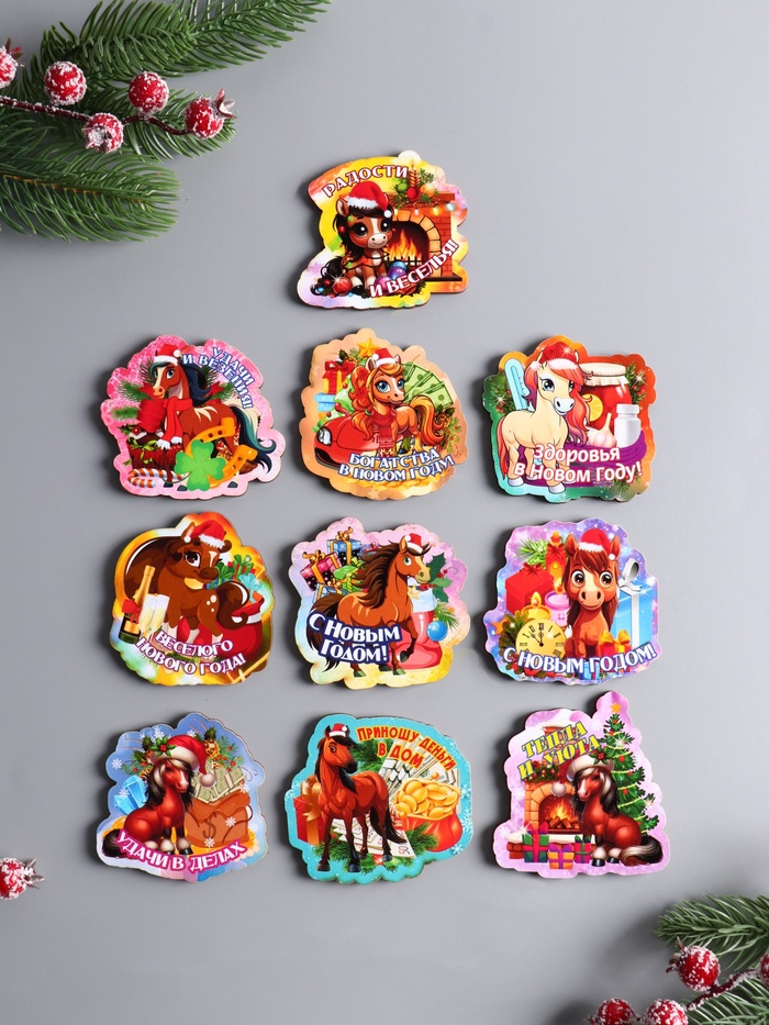 Представьте аксессуар, который преобразит кухонное пространство, добавляя нотку праздничного очарования. Этот набор из десяти магнитов, каждый размером 7 сантиметров, воплощает лошадь как символ 2026 года, выполнен из дерева и идеально подходит для холодильника, создавая атмосферу тепла в повседневной жизни.