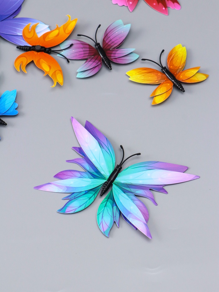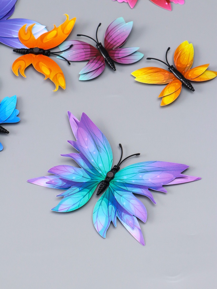 Набор магнитов на холодильник пластик «Бабочки градиентные 2D», 12 шт. — Характеристики