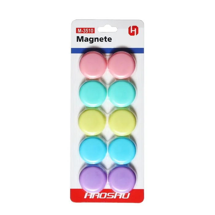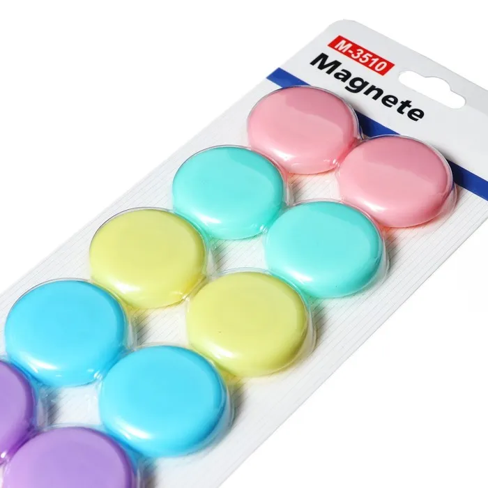 Магниты станут отличным дополнением для вашей доски объявлений или холодильника. Набор из 10 ярких, разнообразных оттенков оживит любую поверхность, обеспечивая надежное крепление заметок, фотографий или рисунков. Диаметр 35 мм делает их универсальными и удобными для использования как дома, так и в офисе.
