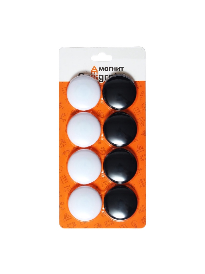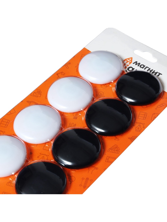 Декоративные магниты для доски прекрасно сочетают в себе стиль и практичность. Эти магниты диаметром 4 см идеально подходят для крепления заметок, фотографий и других важных мелочей на вашей офисной или домашней магнитной доске. В наборе восемь магнитов — четыре белых и четыре черных — которые гармонично впишутся в любой интерьер, от минималистичного до классического.