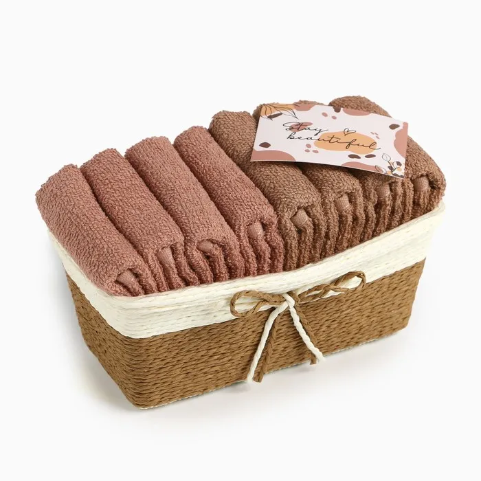 Набор махровых декоративных салфеток Этель Beautiful, 30×30 см - 8 шт, коричневый, 100% хлопок — Характеристики