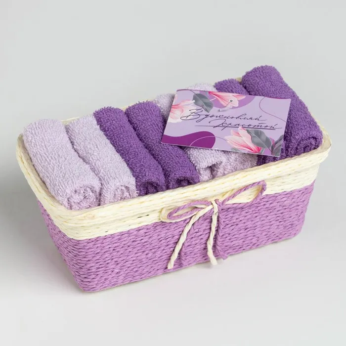 Набор махровых декоративных салфеток Этель Beautiful, 30×30 см - 8 шт, сиреневый, 100% хлопок — Характеристики