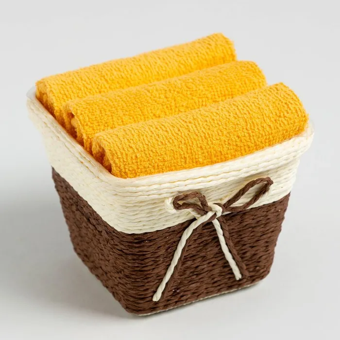 Набор махровых декоративных салфеток Этель "Вид 2" 30х30см-3шт, цвет жёлтый, 100% хлопок — Характеристики