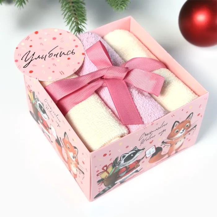 Набор махровых полотенец "Енот и лисичка" 30х30 см - 3 шт, хлопок 340гр/м2 — Характеристики