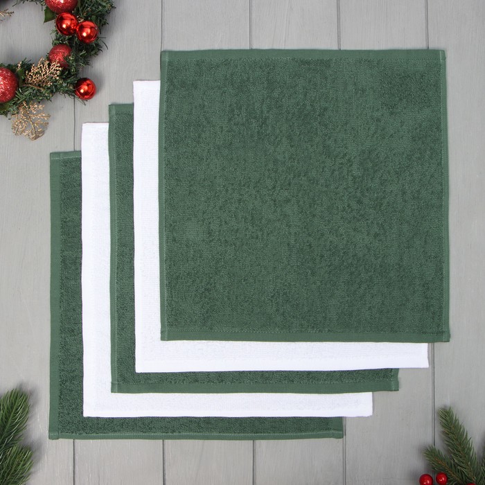 Этот набор махровых салфеток — готовое решение для создания праздничной атмосферы за новогодним столом. Пять квадратных полотенец в бело-зелёной гамме с тематическим рисунком сразу задают тон торжеству. Их удобно использовать как индивидуальные салфетки для гостей или как стильный декор для сервировки.