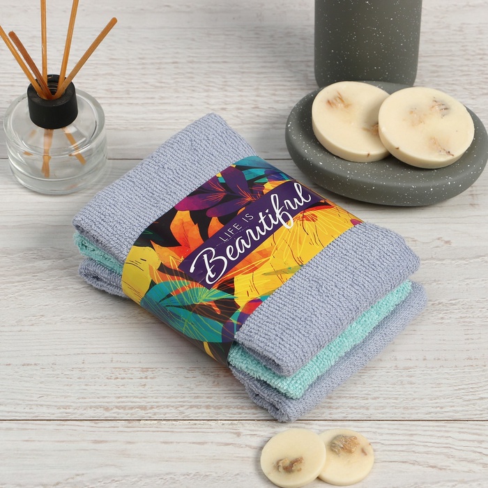 Набор махровых полотенец Life is beautiful 30×30 см - 3 шт., 100% хлопок 340 г/м² — Характеристики