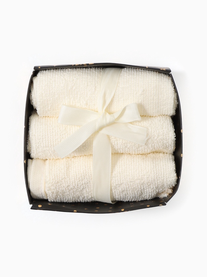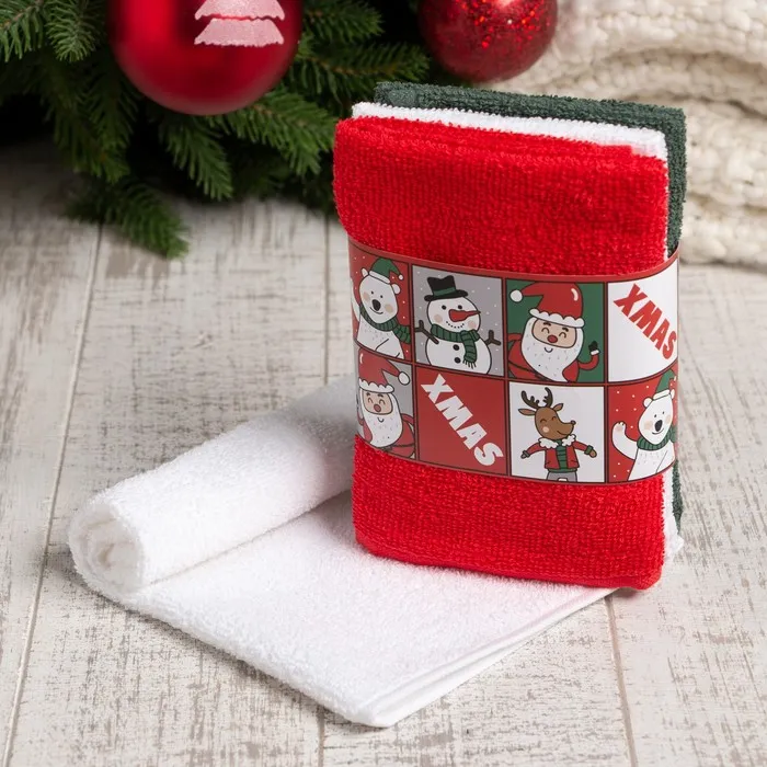Набор «Merry Christmas» — три маленьких полотенца в подарочной коробке, как три добрых слова перед праздником. Бежевый фон с лаконичной новогодней графикой — не снегопад стереотипов, а тёплое “спасибо за этот год”. Размер 30×30 см подходит для лица, рук или как гостевые салфетки: компактные, но плотные, из 100 % хлопка — мягкие с первого прикосновения, ещё мягче — со временем.