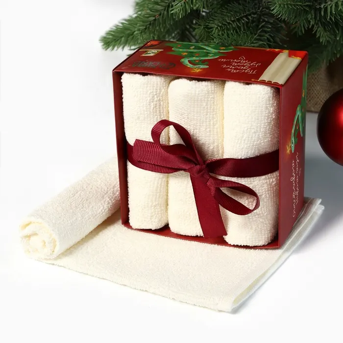 Набор махровых полотенец Merry Christmas, 3 шт., бежевые, 30×30 см, хлопок 340 г/м² — Характеристики