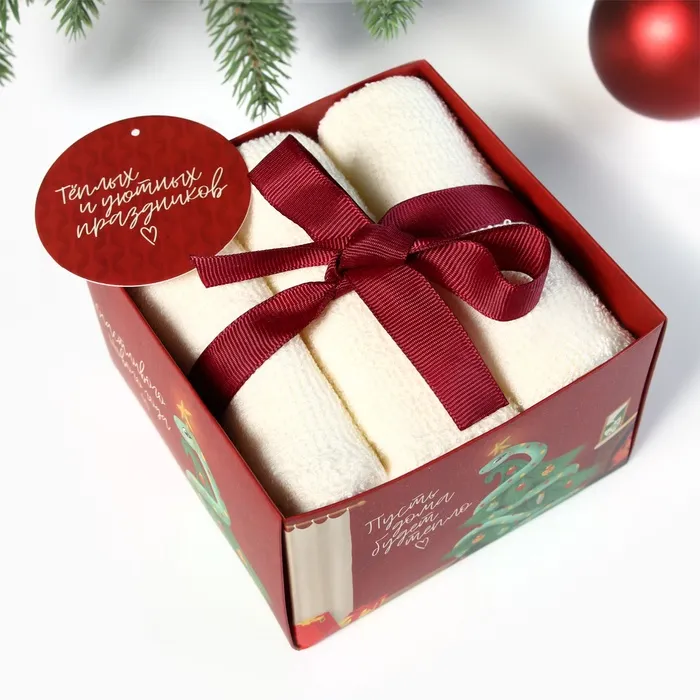 Набор махровых полотенец "Змея на ёлке" 30х30 см - 3 шт, хлопок 340гр/м2 — Характеристики