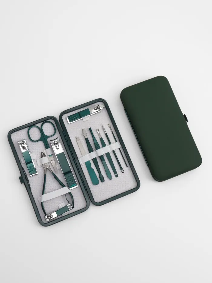 Набор маникюрный, 12 предметов, в футляре, цвет изумрудный — Характеристики