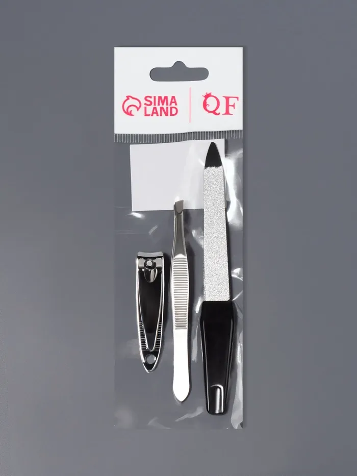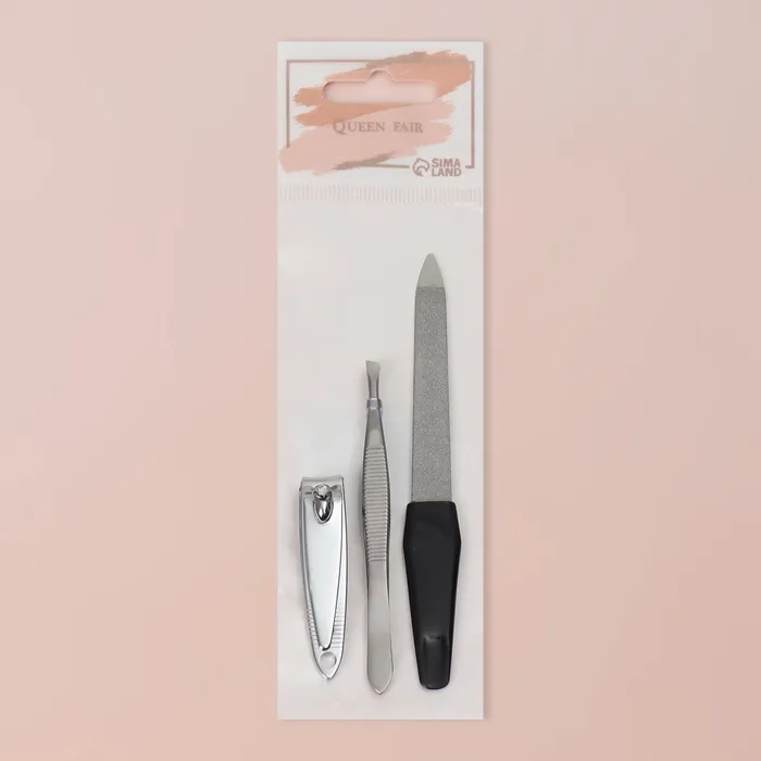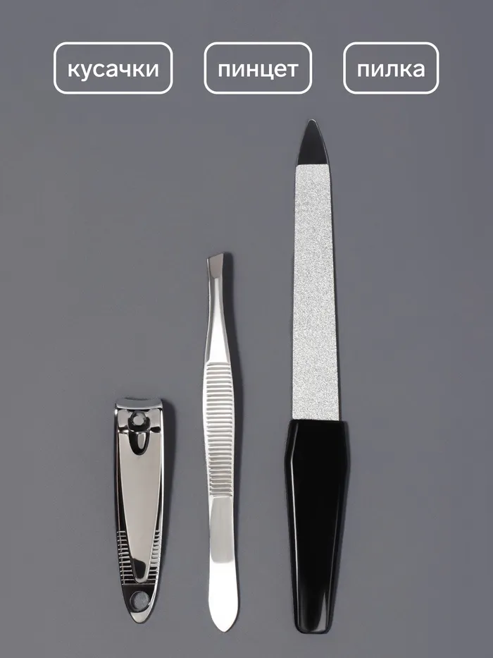 Набор маникюрный, 3 предмета, чёрный, серебристый — Характеристики