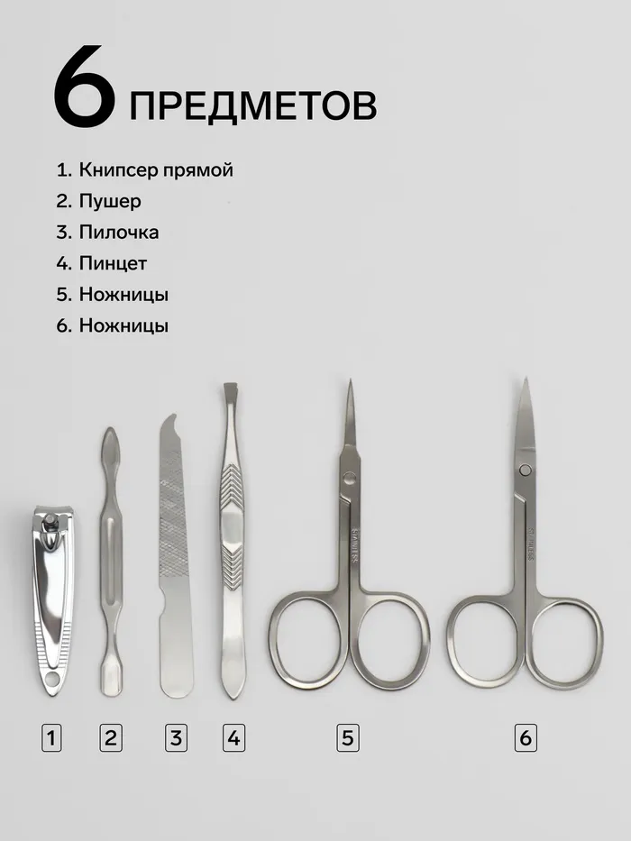 Набор маникюрный, 6 предметов, в футляре, красный — Характеристики