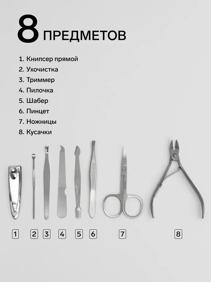 Набор маникюрный, 8 предметов, в футляре, МИКС — Характеристики