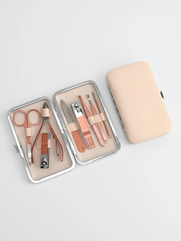 Набор маникюрный, 8 предметов, в футляре, цвет бежевый, розовое золото — Характеристики
