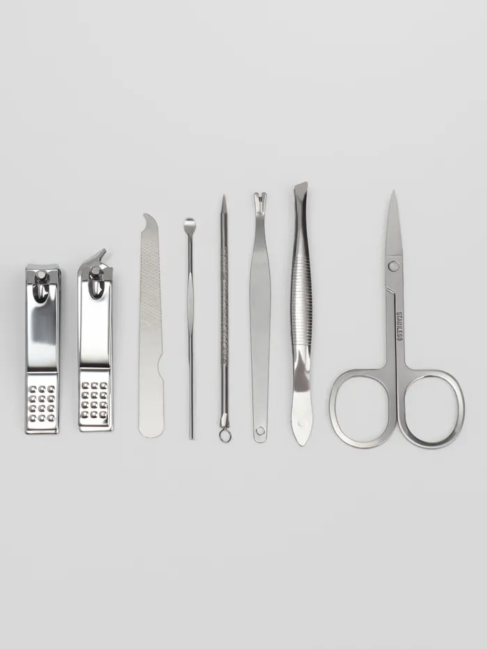 Комплект из 8 удобных и незаменимых принадлежностей пригодится не только дома, но и в поездке или путешествии. Они в любой ситуации помогут сохранять привлекательный внешний вид. А удобный футляр, выполненный в лаконичном однотонном дизайне, обеспечит сохранность инструментов.