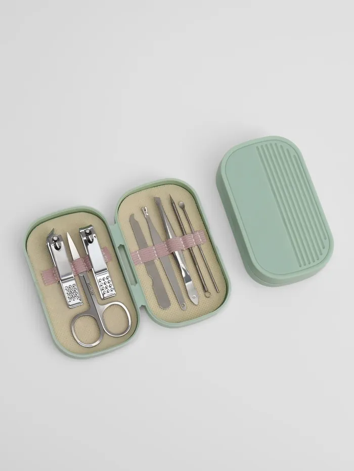 Комплект из 8 удобных и незаменимых принадлежностей пригодится не только дома, но и в поездке или путешествии. Они в любой ситуации помогут сохранять привлекательный внешний вид. А удобный футляр, выполненный в лаконичном однотонном дизайне, обеспечит сохранность инструментов.