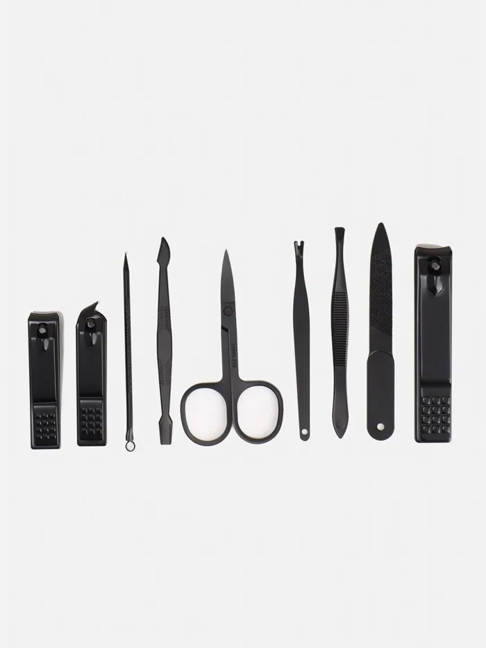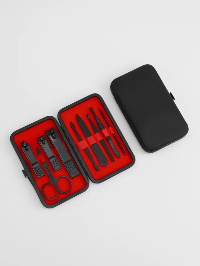 Комплект из 9 удобных и незаменимых принадлежностей пригодится не только дома, но и в поездке или путешествии. Они в любой ситуации помогут сохранять привлекательный внешний вид. А удобный футляр, выполненный в лаконичном однотонном дизайне, обеспечит сохранность инструментов.