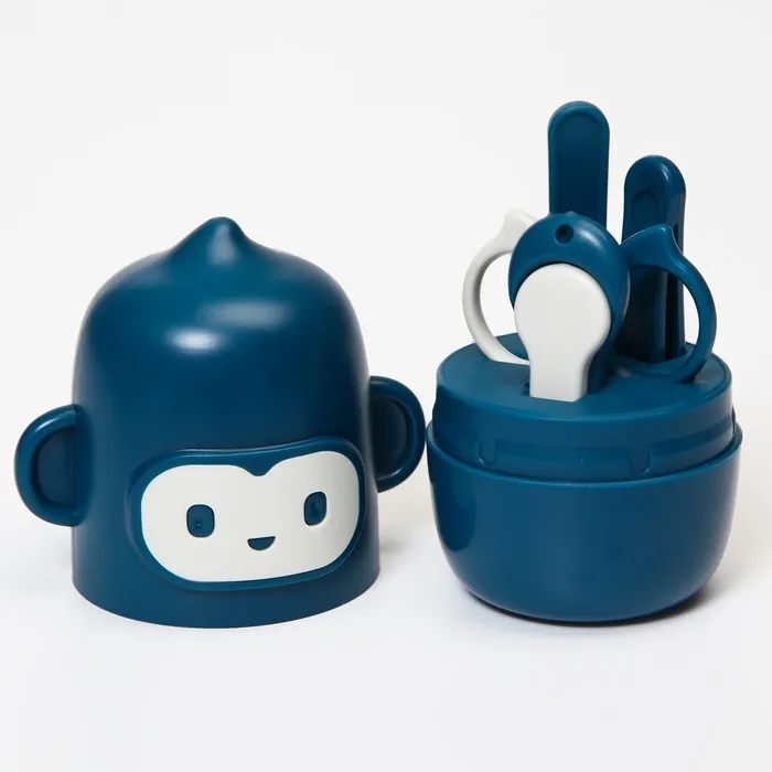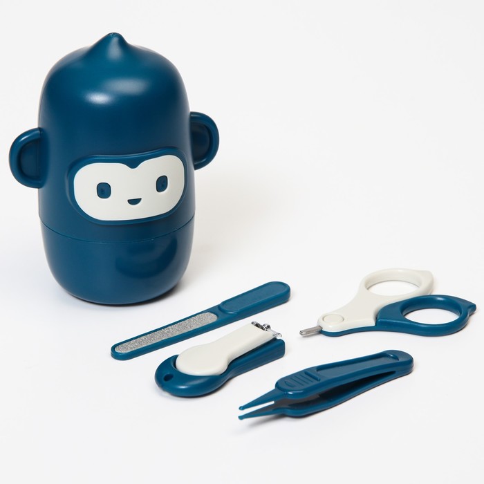 Набор маникюрный детский «Обезьянка»: ножницы, щипчики, пилочка, пинцет, цвет синий — Характеристики