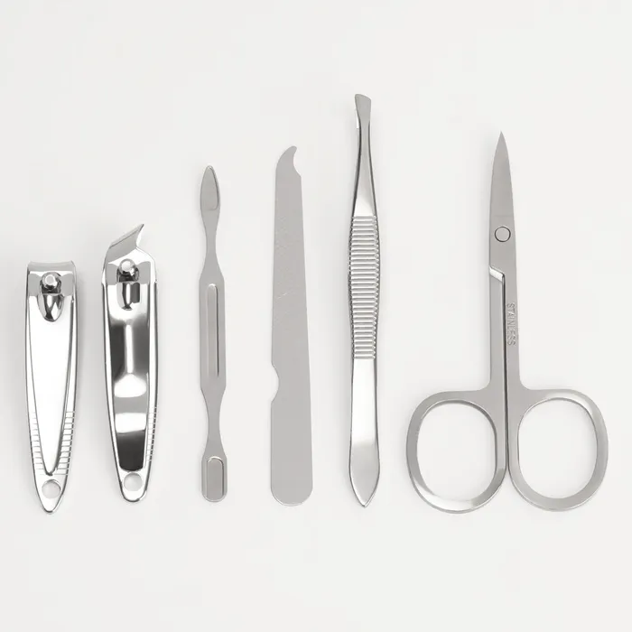Все инструменты изготовлены из металла, который обеспечивает надёжность. Набор поставляется в стильном футляре белого цвета с утончённым голубым рисунком, который защищает инструменты от повреждений и загрязнений.