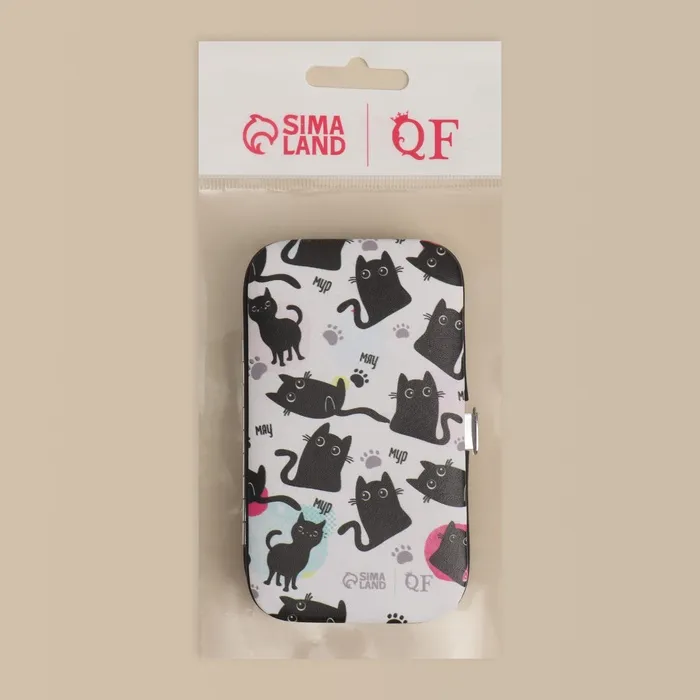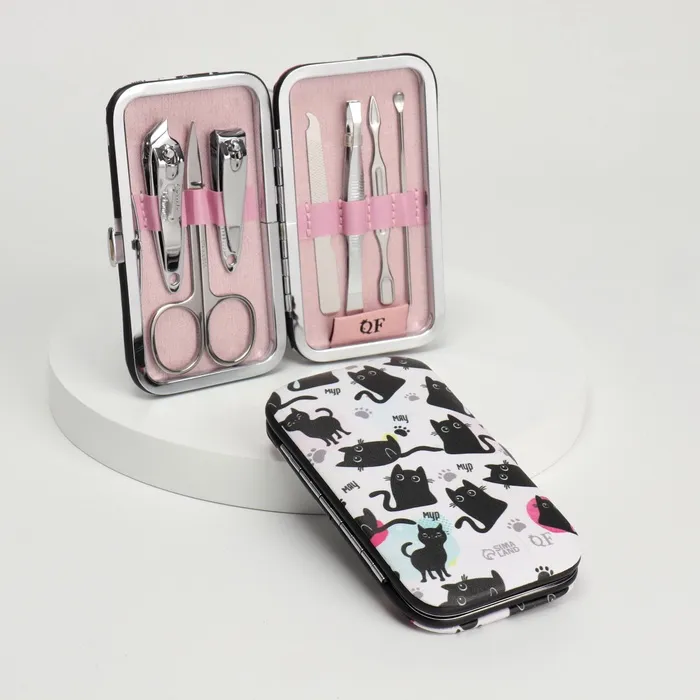 Набор маникюрный «Мур-мяу», 7 предметов, в футляре, чёрный, белый — Характеристики