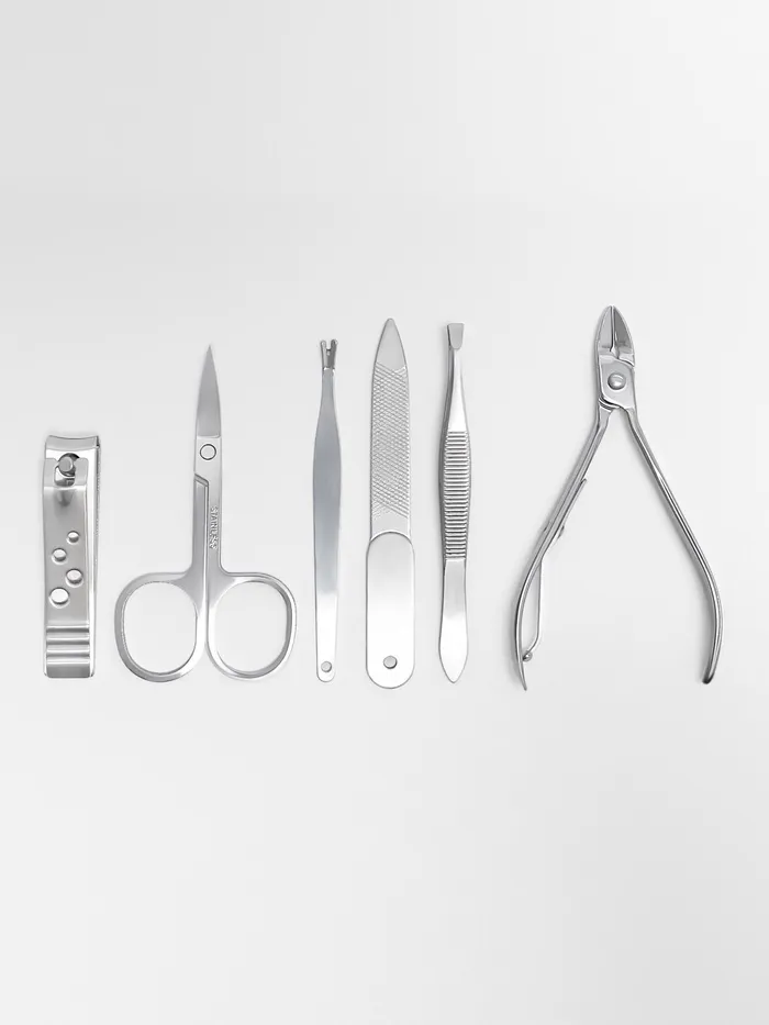 Комплект из 6 удобных и незаменимых принадлежностей пригодится не только дома, но и в поездке или путешествии. Они в любой ситуации помогут сохранять привлекательный внешний вид. А удобный футляр, выполненный в лаконичном однотонном дизайне, обеспечит сохранность инструментов.
