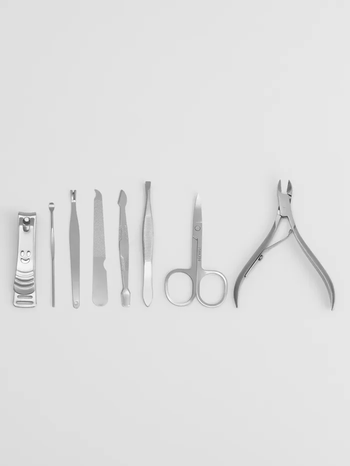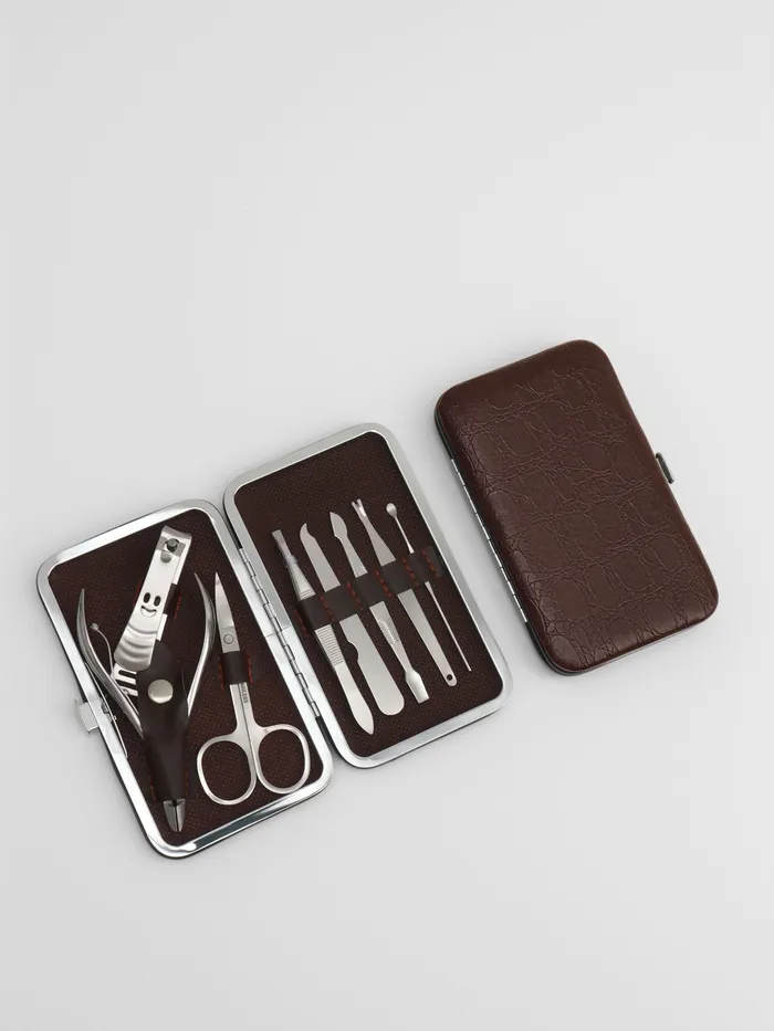 Комплект из 8 удобных и незаменимых принадлежностей пригодится не только дома, но и в поездке или путешествии. Они в любой ситуации помогут сохранять привлекательный внешний вид. А удобный футляр, выполненный в лаконичном однотонном дизайне, обеспечит сохранность инструментов.