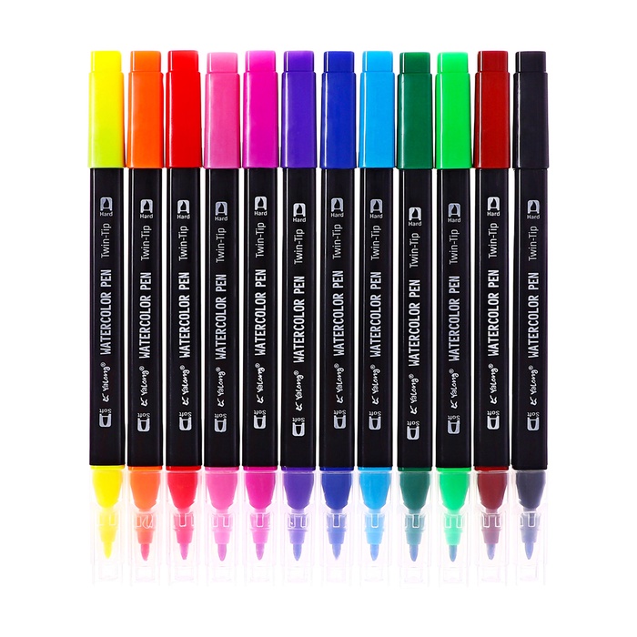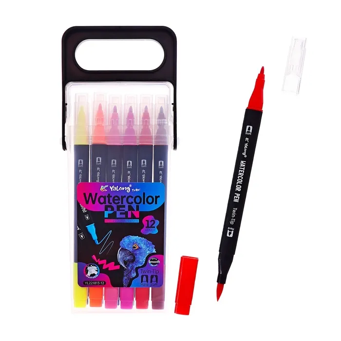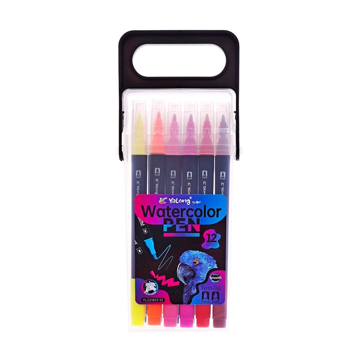 Набор маркеров 12 цветов, двусторонние, черный корпус в пластиковом пенале — Характеристики