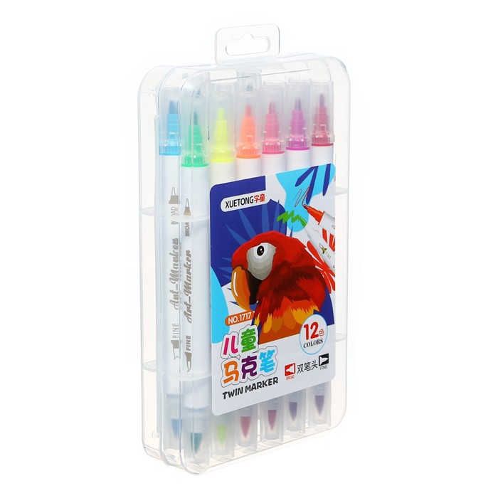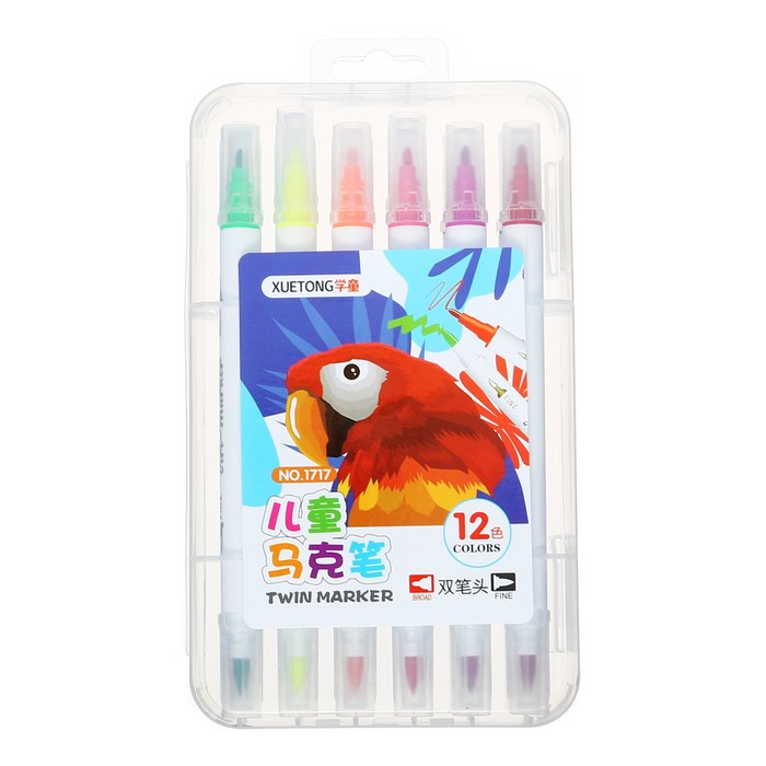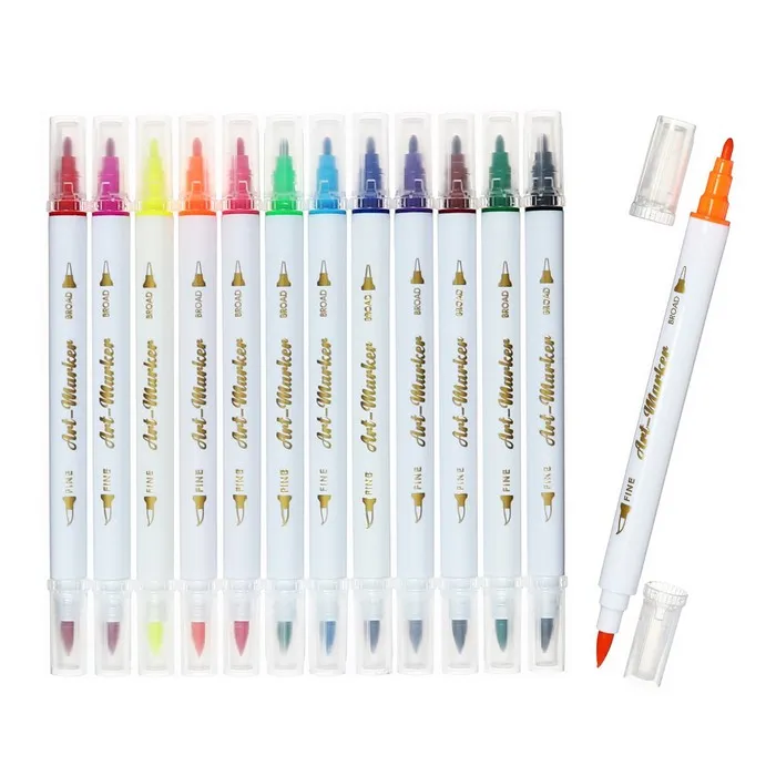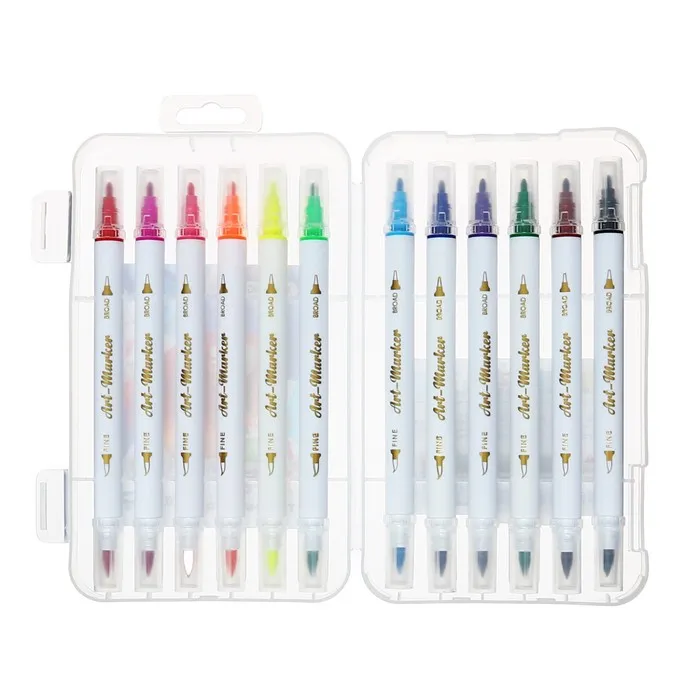 Набор маркеров 12 цветов, двусторонние, пулевидный и кистеобразный наконечники — Характеристики