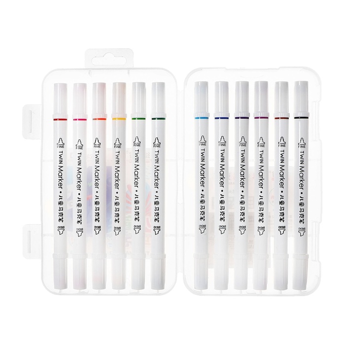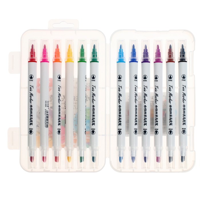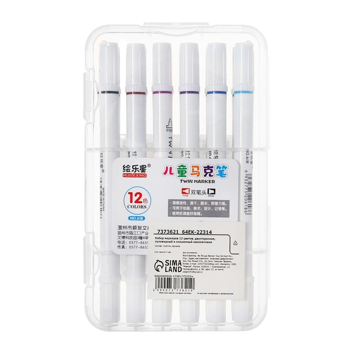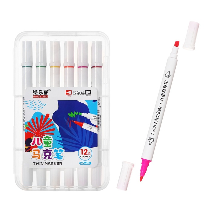 Набор маркеров 12 цветов, двусторонние, пулевидный и скошенный наконечники — Характеристики