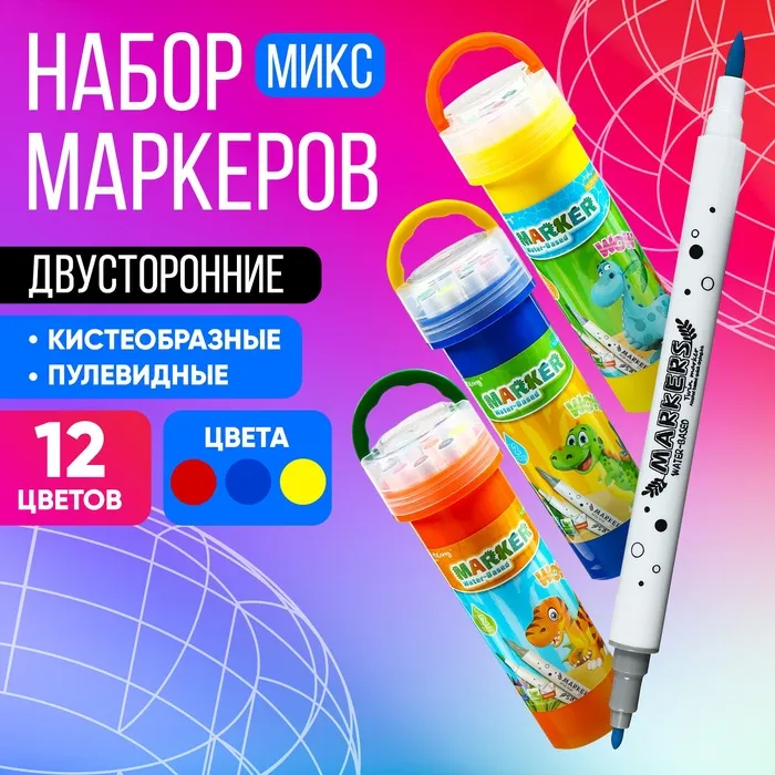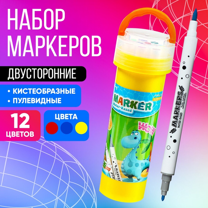 Набор маркеров 12 цветов, двусторонние, в пластик тубусе МИКС — Характеристики