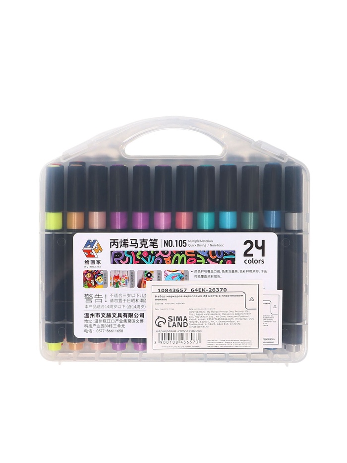 Набор маркеров акриловых, 24 цвета, в пластиковом пенале — Характеристики