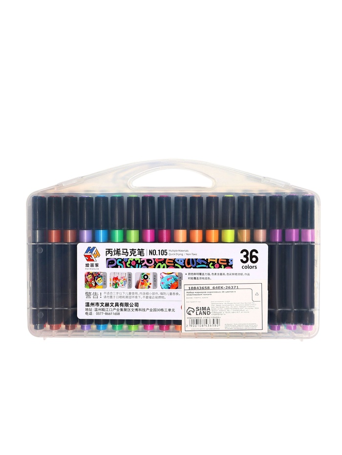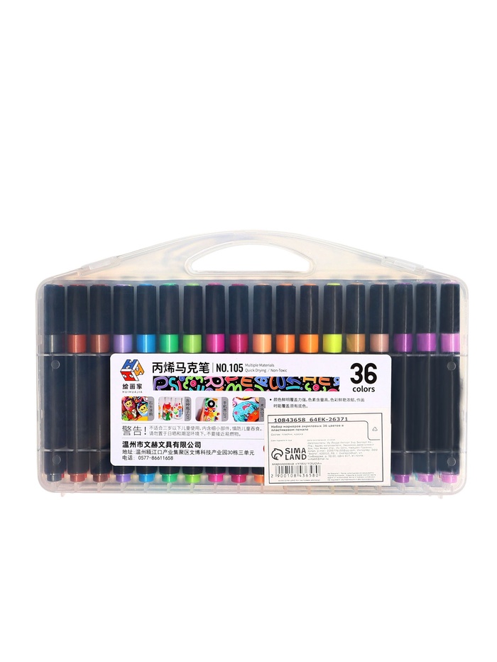 Набор маркеров акриловых, 36 цветов, в пластиковом пенале — Характеристики