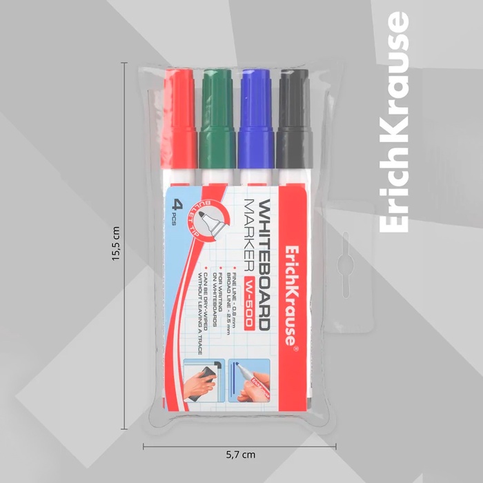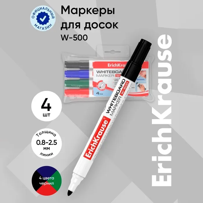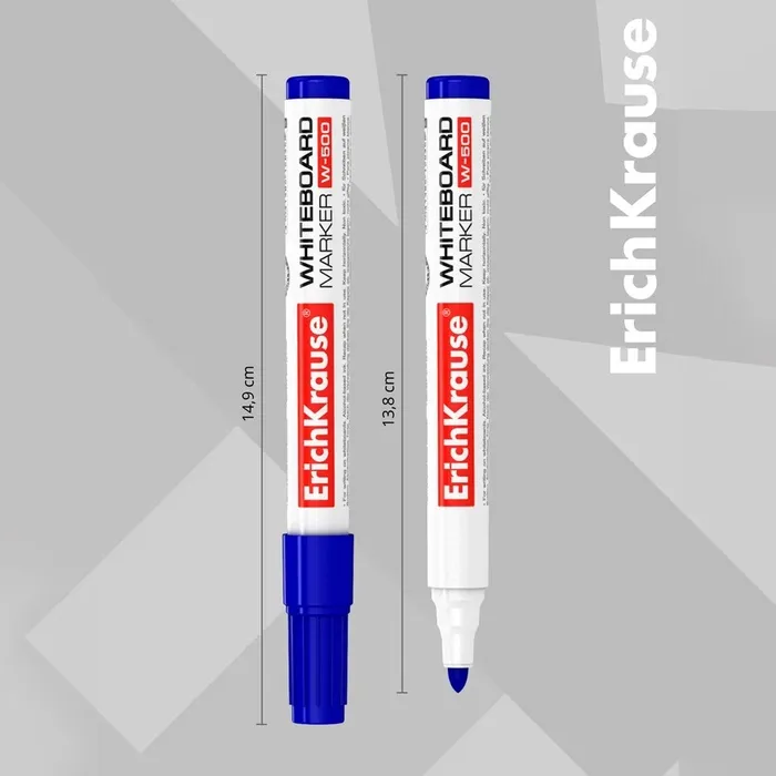 Маркер для письма и сухого стирания на досках. Очень практичный, незаменим во время проведения презентаций, совещаний и пр. Имеет круглую форму корпуса, цветной колпачок, соответствующий цвету чернил. Наконечник пулевидной формы, устойчивый к повреждению и истиранию. Ширина письма – 0.8-2.2 мм. Чернила на спиртовой основе, быстро высыхают после нанесения. Надписи легко стираются сухой тканью, не оставляя следов. Нетоксичные. Не содержат ксилол, толуол. Хранить горизонтально. Срок годности 5 лет.