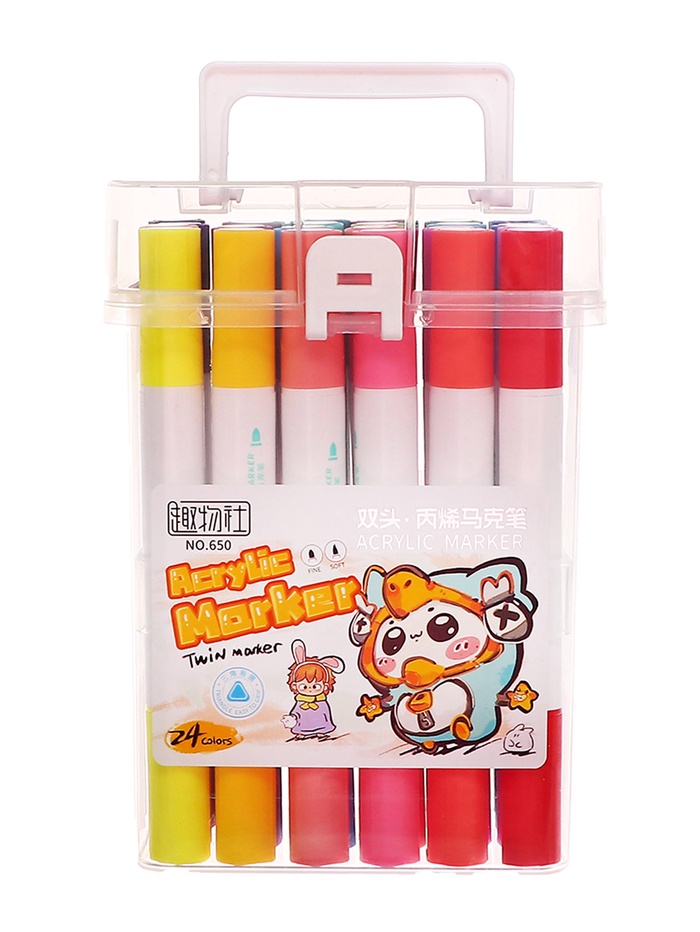 Набор акриловых маркеров, 24 цвета, в пластиковом кейсе, двусторонние