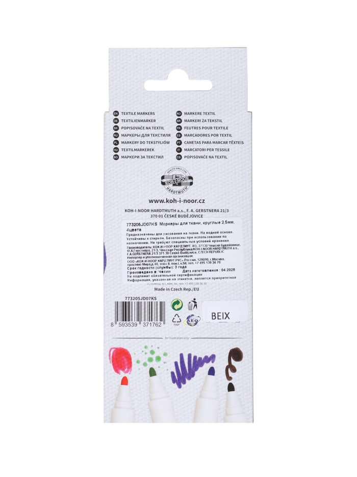 Набор маркеров для ткани 3205, круглых 2.5 мм, 4 цвета — Характеристики