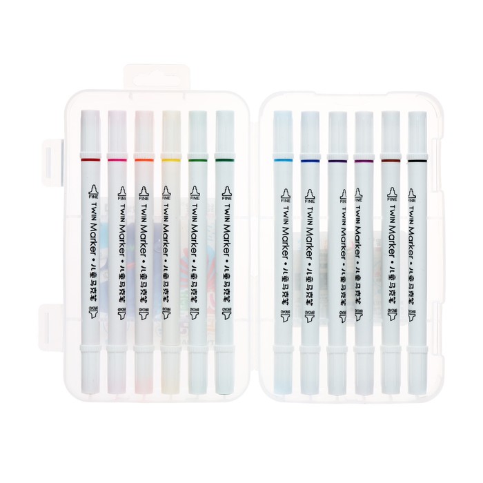 Набор маркеров, двусторонние, пулевидный и скошенный наконечники, 12 цветов — Характеристики