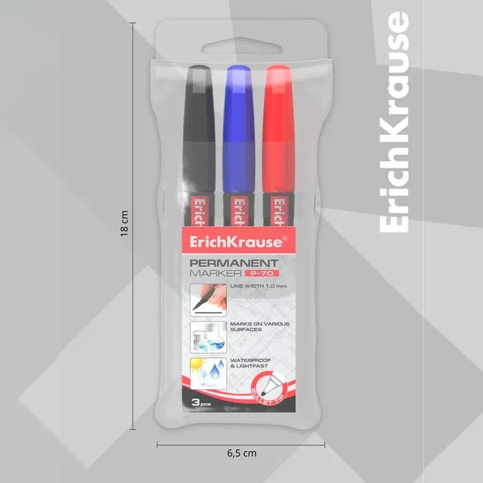 Набор маркеров перманентных 3 цвета, 1.0 мм, ErichKrause P-70, микс — Характеристики