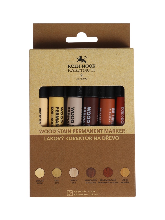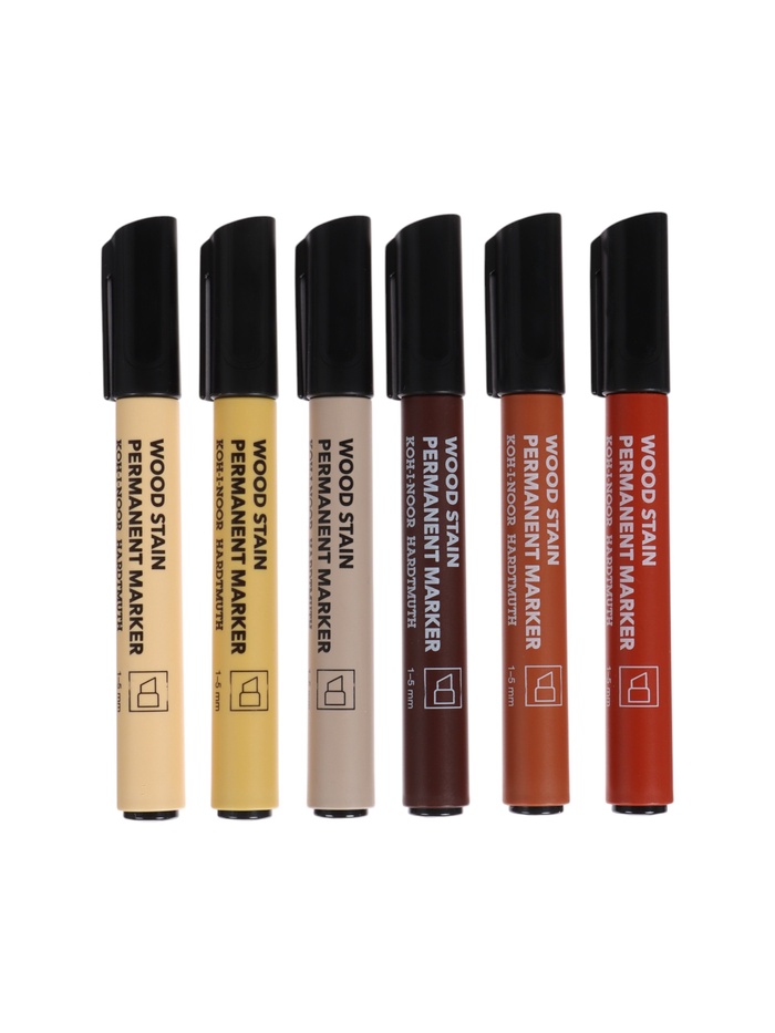 Набор маркеров перманентных для мебели 6 цветов, 1-5 мм Koh-i-noor 4506, скошенные