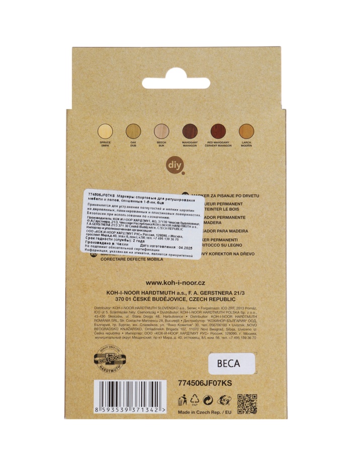 Набор маркеров перманентных для мебели 6 цветов, 1-5 мм Koh-i-noor 4506, скошенные — Характеристики