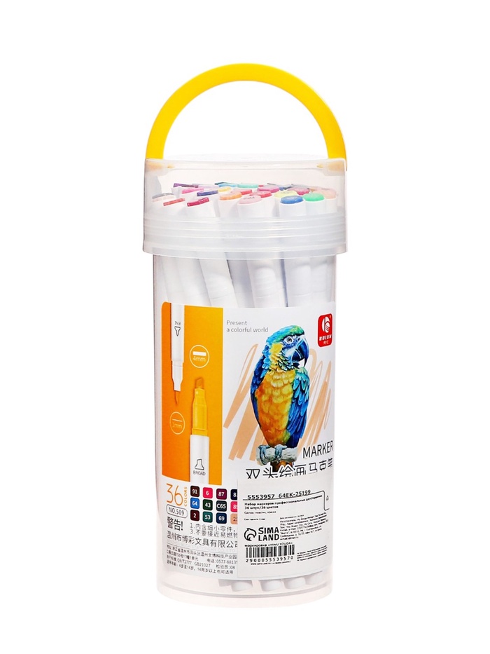 Большой ресурс чернил - более 300 метров линия рисования.Набор из 36 оригинальных профессиональных двухсторонних маркеров / фломастеры для скетчинга.Идеальные инструменты для иллюстраторов, студентов и всех, увлекающихся творчеством.Фломастеры используются для создания скетчей, манга, комиксов, скрапбукинга и многого другого.Подходят для письма по большинству поверхностей: бумага, пластик, дерево и др.Дети просто в восторге от такого подарка!Линия письма намного тоньше и изящней.Такой маркер можно использовать для написания красивых текстов, обводить рисунки, и заниматься более тонкой творческой работой.Широкий выбор цветов позволит создавать более насыщенные композиции.Яркие, стойкие цвета, удобный корпус - хороший выбор для работы и творчества.