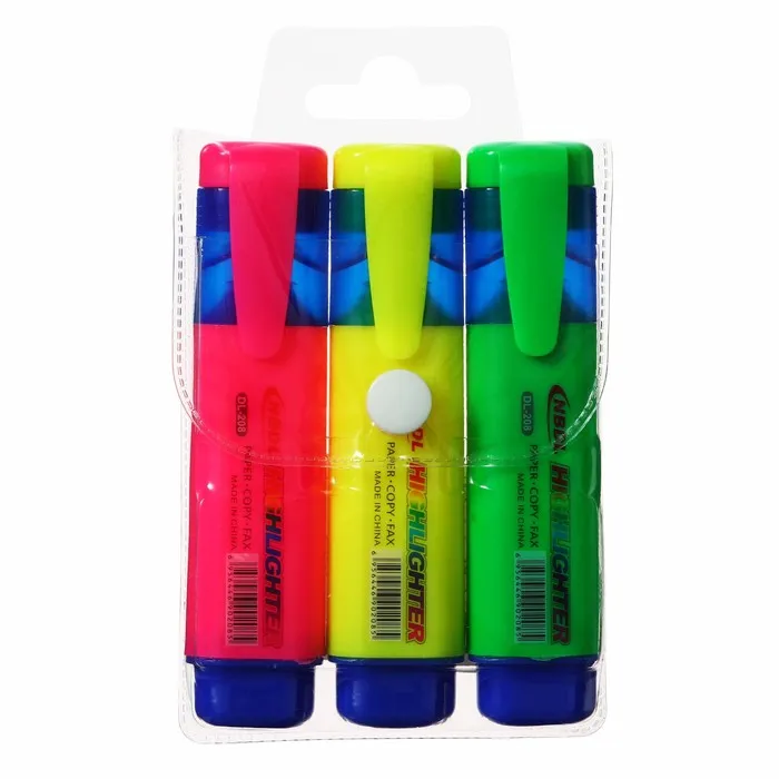Набор маркеров-текстовыделителей 3 цвета 5.0 мм на блистере поможет вам с работой любой сложности. Его специальный клиновидный наконечник удобно выделяет нужную строку машинописного текста по всей ширине. Этот маркер подходит для всех видов бумаги и не выцветает со временем.