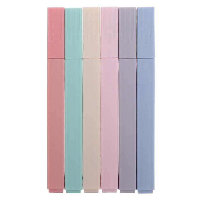 Маркеры-текстовыделители из этого набора предназначены для письма на бумаге. 6 пастельных цветов. Корпус квадратный. Тип наконечника: скошенный. Состав: пластик, чернила.