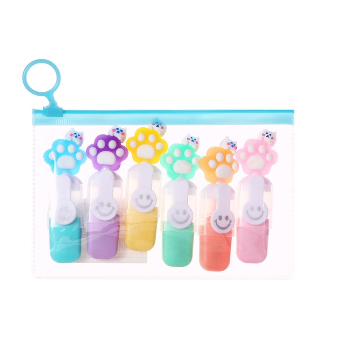 Набор маркеров текстовыделителей 6 штук 6 цветов, в пенале на молнии Лапки смайл