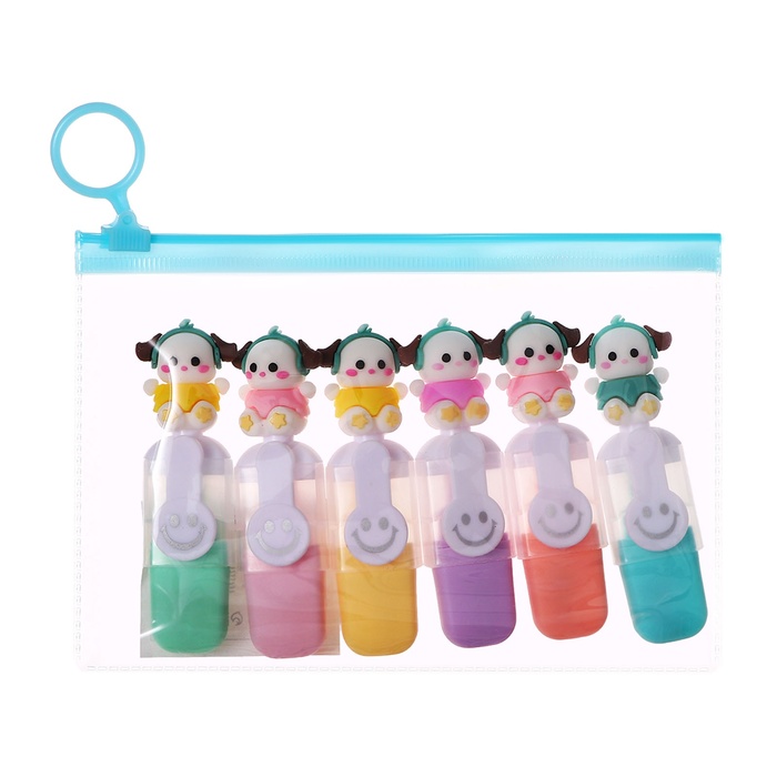 Набор маркеров текстовыделителей 6 штук 6 цветов, в пенале на молнии Милашка — Характеристики