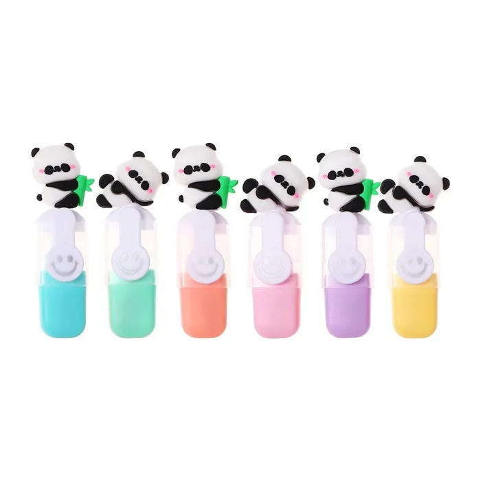 Набор маркеров текстовыделителей 6 штук 6 цветов, в пенале на молнии Панды — Характеристики