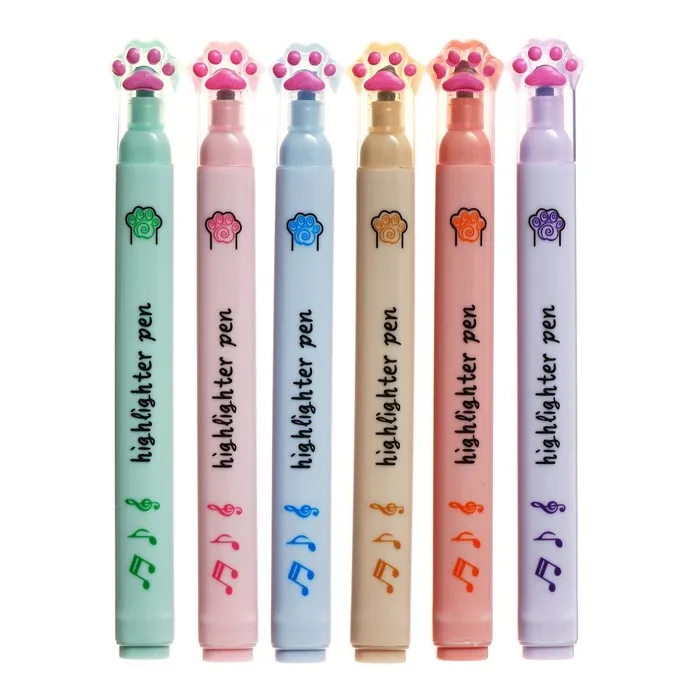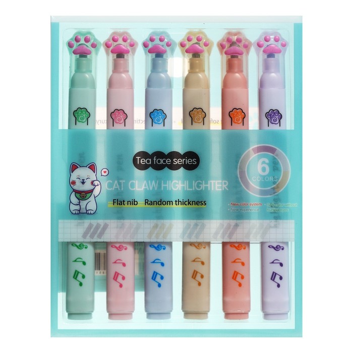 Набор маркеров-текстовыделителей 6 цветов, "Лапки с нотами" — Характеристики
