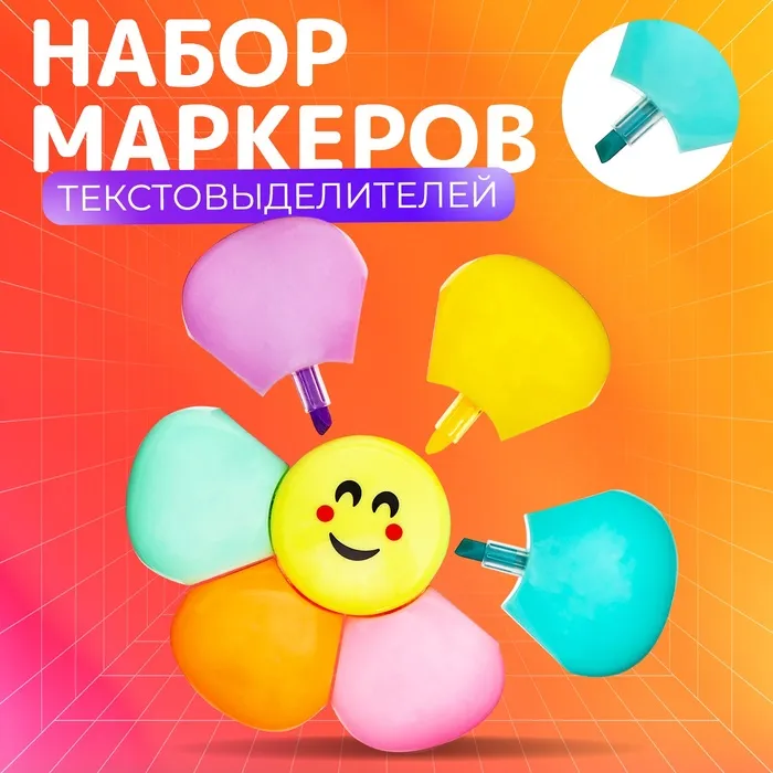 Набор маркеров текстовыделителей 6 цветов, Цветок, в пакете — Характеристики